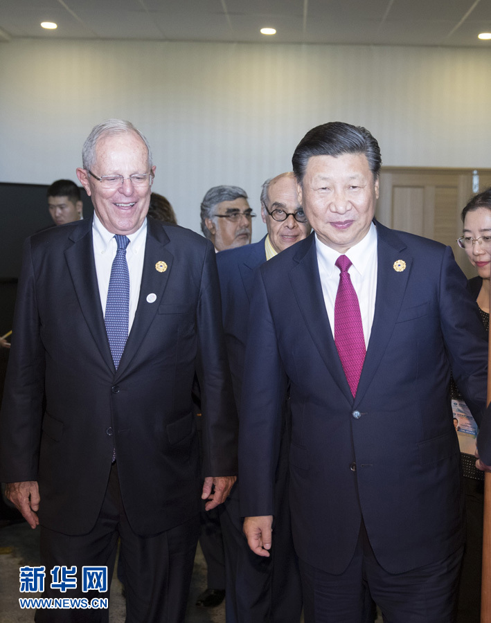 發(fā)表演講后,習(xí)近平簡(jiǎn)短會(huì)見了專程前來聆聽演講的秘魯總統(tǒng)庫(kù)琴斯基。