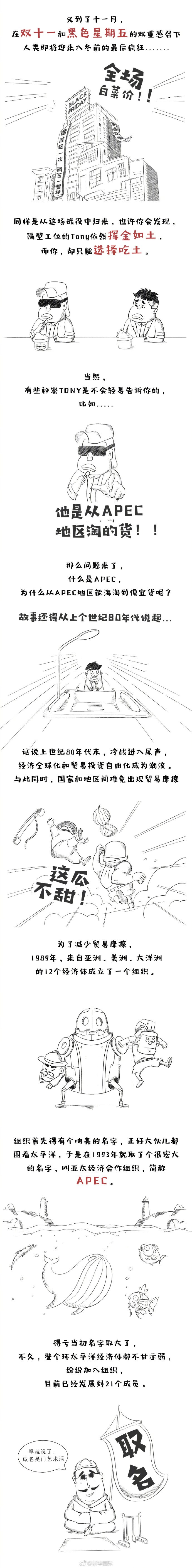 亞太經(jīng)合組織(APEC)第二十五次領(lǐng)導(dǎo)人非正式會(huì)議定于10日至11日在越南峴港舉行。APEC是啥?和你我生活有啥關(guān)系?一組漫畫告訴你。