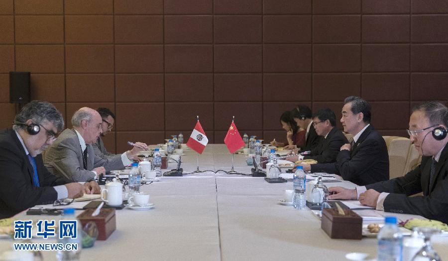 11月11日,外交部長王毅在越南峴港應(yīng)約會見秘魯外長盧納。 新華社記者費茂華 攝
