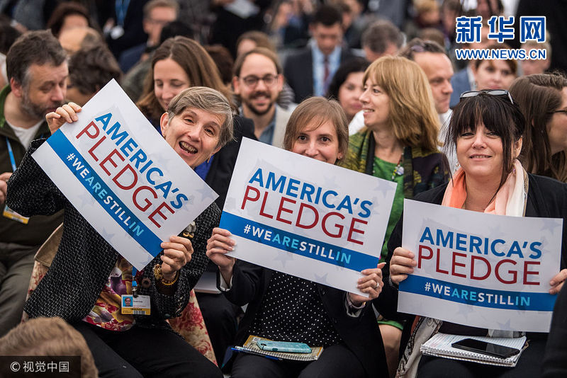 當(dāng)?shù)貢r間2017年11月11日,德國波恩,波恩氣候大會召開,“美國會館”內(nèi)景。雖然美國宣布退出了《巴黎協(xié)定》,但美國氣候談判代表仍出席了波恩的會議。美國除聯(lián)邦外的各級政府均派代表參加波恩會議,且主要目的就是表明他們?nèi)詫⒅铝τ趦冬F(xiàn)美國在巴黎做出的承諾。在美國國內(nèi),成千上萬的市長、州長、部落首領(lǐng)、企業(yè)高管以及普通美國人都在努力降低溫室氣體排放。這個名為“我們?nèi)栽趫允兀╓e Are Still In)”的聯(lián)盟的成員代表了美國一半以上的人口以及54%的經(jīng)濟產(chǎn)出?!拔覀?nèi)栽趫允亍保?We Are Still In)、“美國氣候聯(lián)盟”、“氣候市長”(Climate Mayors)和其它諸多計劃向全世界傳遞了這樣一個信息,即美國仍然有很多人正致力于擁有宏偉目標的氣候行動之中,而“美國的承諾”(America’s Pledge)正在尋求如何量化并傳播這些承諾。(圖片來源:視覺中國)