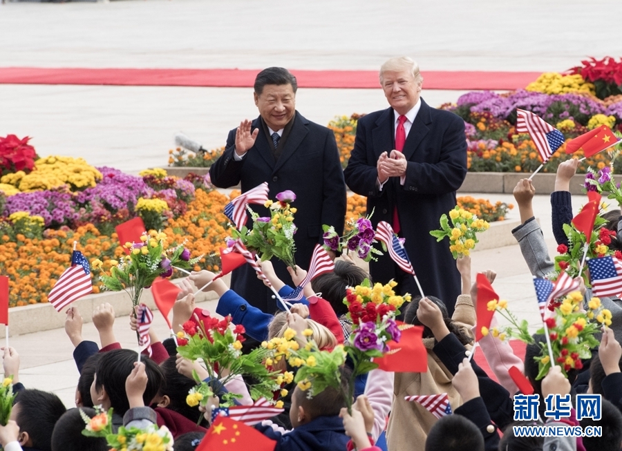 11月9日,國家主席習(xí)近平在北京人民大會堂東門外廣場舉行歡迎儀式,歡迎美利堅(jiān)合眾國總統(tǒng)唐納德·特朗普對中國進(jìn)行國事訪問。 新華社記者李學(xué)仁 攝