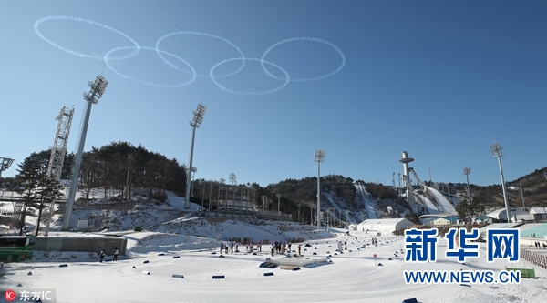 平昌冬奧會倒計時50天 韓黑鷹飛行隊在空中“畫”出奧運(yùn)五環(huán)(圖)