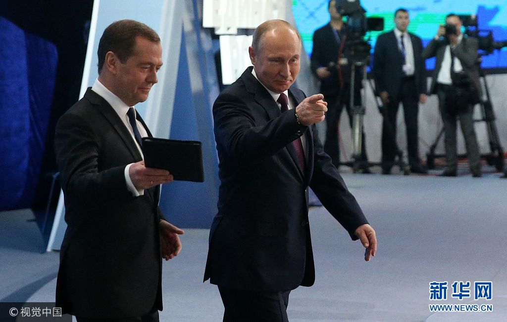 當(dāng)?shù)貢r(shí)間2017年12月23日,俄羅斯莫斯科,俄羅斯總統(tǒng)普京出席第17次統(tǒng)一俄羅斯黨大會(huì)。(圖片來(lái)源:視覺(jué)中國(guó))