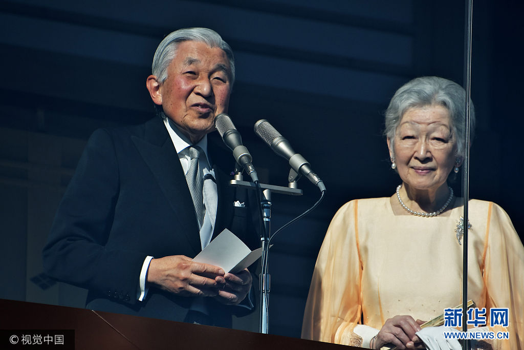當(dāng)?shù)貢r(shí)間2017年12月23日,日本東京,日本明仁天皇慶祝84歲生日,在皇宮的陽臺(tái)上向祝福者揮手致意。(圖片來源:視覺中國)