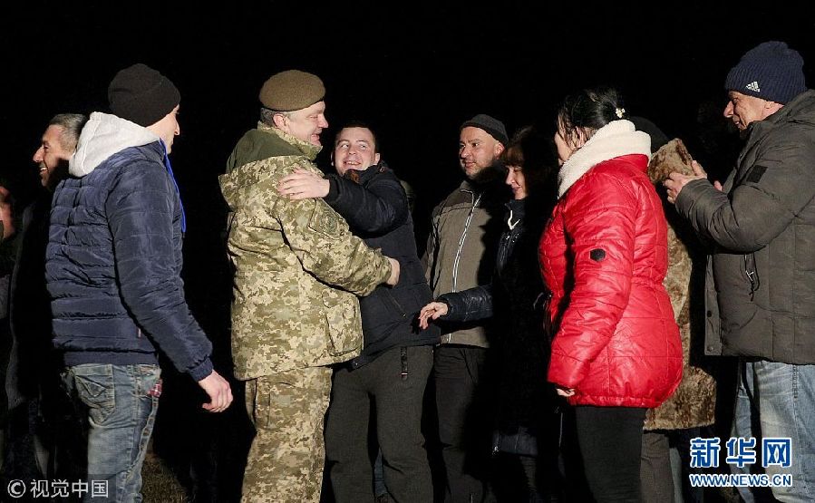12月27日,烏克蘭哈爾科夫,獲釋戰(zhàn)俘抵達(dá)哈爾科夫。烏克蘭政府軍與東部民間武裝當(dāng)日舉行了大規(guī)模的交換戰(zhàn)俘行動。(圖片來源:視覺中國)