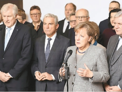 在此前的大選中,默克爾帶領(lǐng)的基民盟勝出,成為第一大黨,但它和基社盟組成的“聯(lián)盟黨”在議會(huì)中未超過(guò)半數(shù)席位,因此必須和其他黨聯(lián)合組閣。