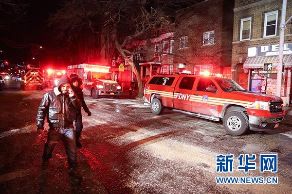 12月29日凌晨,人們從美國紐約布朗克斯區(qū)發(fā)生火災的樓房附近經(jīng)過。新華社記者 王迎 攝