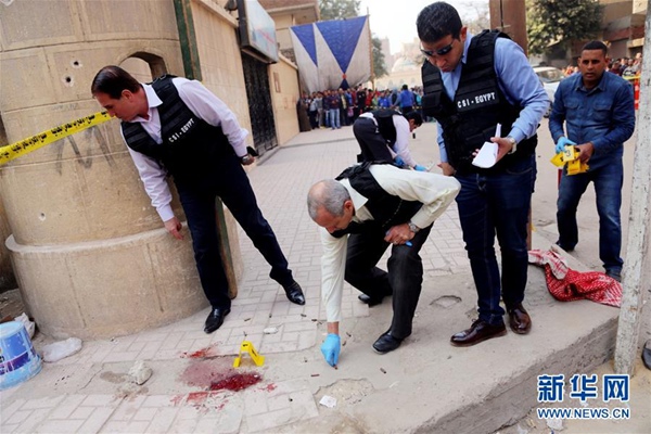 12月29日,警察在埃及開羅教堂襲擊事件現場調查。新華社發(fā)(艾哈邁德·戈馬攝)