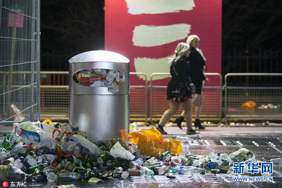英國(guó):狂歡過(guò)后遍地垃圾 清潔工作者清理跨年夜殘局
