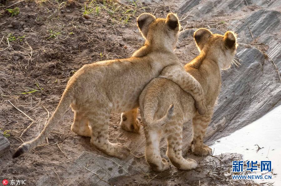 1月2日?qǐng)?bào)道(具體拍攝時(shí)間不詳),肯尼亞馬賽馬拉國(guó)家保護(hù)區(qū),64歲的攝影師Ingo Gelach在當(dāng)?shù)嘏臄z到一組有趣又暖心的照片。畫(huà)面中,兩頭小獅子站在水邊,似乎正考慮跨越面前的水域。其中一頭獅子用前腳搭在同伴的肩膀上,似乎在表達(dá)友好,又似是在鼓勵(lì)同伴不要害怕,勇敢地跨過(guò)去。(圖片來(lái)源:東方IC)