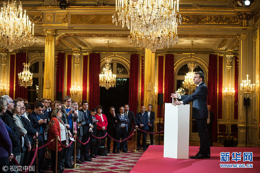 法國總統(tǒng)馬克龍向記者團(tuán)送上新年祝福