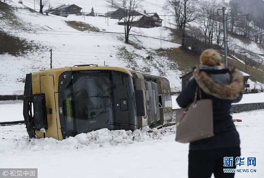 1月3日,瑞士倫克,風(fēng)暴“埃莉諾”來襲,一列火車被大風(fēng)吹得脫軌了。風(fēng)暴“埃莉諾”襲擊該國,數(shù)千戶家庭斷電。瑞士氣象局對(duì)該國大部分地區(qū)發(fā)出了大風(fēng)警報(bào),許多道路被關(guān)閉,一些航班被取消,部分地區(qū)的客輪交通被迫中斷。瑞士警方稱,有數(shù)人被困在圣加侖州的一處滑雪纜車上。而在倫克地區(qū),大風(fēng)把一列火車吹得脫軌了。(圖片來源:視覺中國)
