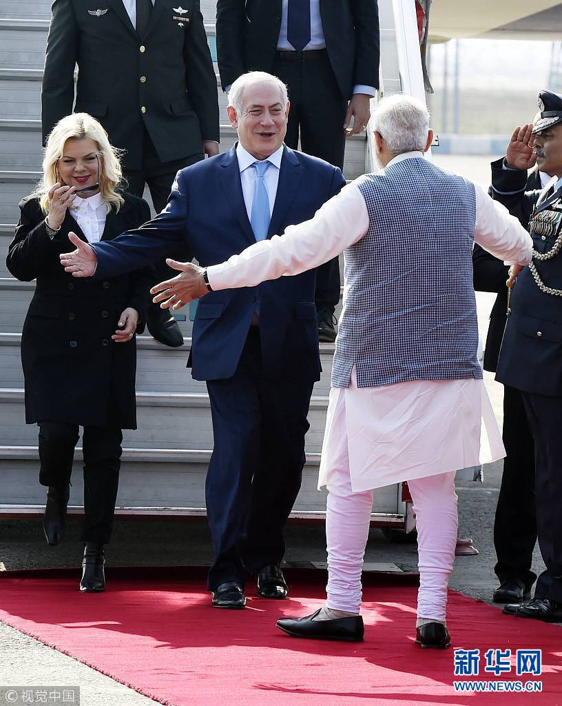 當(dāng)?shù)貢r(shí)間1月14日,印度新德里,以色列總理內(nèi)塔尼亞胡抵達(dá)印度展開(kāi)訪問(wèn)。(圖片來(lái)源:視覺(jué)中國(guó))