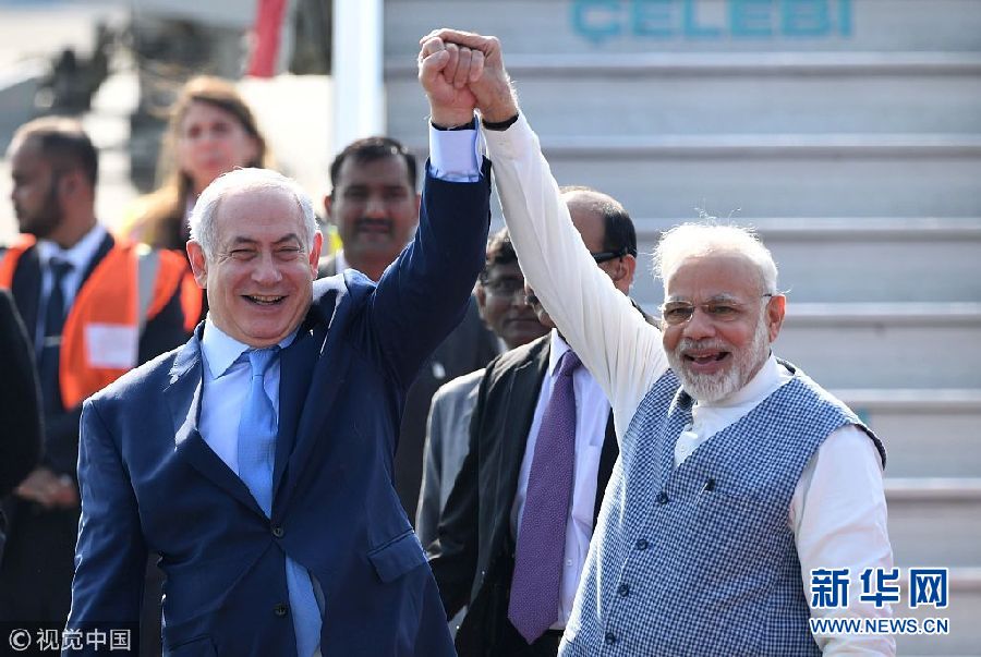 當(dāng)?shù)貢r(shí)間1月14日,印度新德里,以色列總理內(nèi)塔尼亞胡抵達(dá)印度展開(kāi)訪問(wèn)。(圖片來(lái)源:視覺(jué)中國(guó))