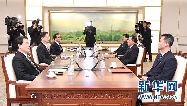朝韓雙方代表15日在板門店朝方一側(cè)的統(tǒng)一閣會晤,雙方就平昌冬奧會和冬殘奧會之際朝方派藝術(shù)團赴韓演出一事達成一致。2018-01-15 22:07:17