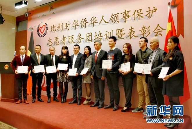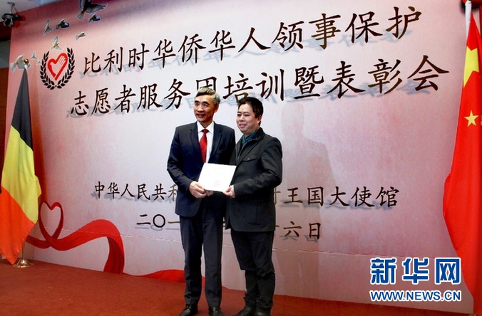 新華網(wǎng)布魯塞爾1月16日專電(記者潘革平)中國駐比利時(shí)大使館16日在布魯塞爾舉行隆重表彰儀式,對(duì)多年來在領(lǐng)事保護(hù)領(lǐng)域表現(xiàn)突出的21名領(lǐng)保志愿者予以表彰,其中包括由比利時(shí)中餐業(yè)聯(lián)合會(huì)會(huì)長楊丐鏡牽頭、去年9月協(xié)助大使館成功解決300多名中國游客因航空公司突然倒閉而滯留比利時(shí)列日機(jī)場(chǎng)問題的12名志愿者。
