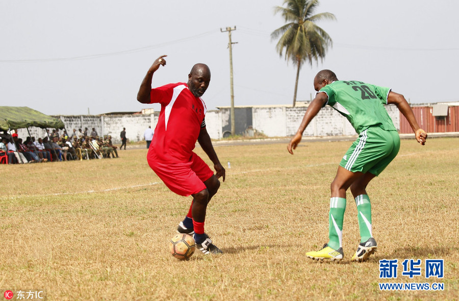 1月20日,利比里亞首都蒙羅維亞,利比里亞當選總統(tǒng)、前世界足球先生喬治-維阿參加慈善足球比賽,率領(lǐng)維阿全明星隊對戰(zhàn)利比里亞武裝部隊士兵隊。喬治-維阿在去年12月27日當選利比里亞新一任總統(tǒng),并將于2018年1月22日就職。(圖片來源:東方IC)