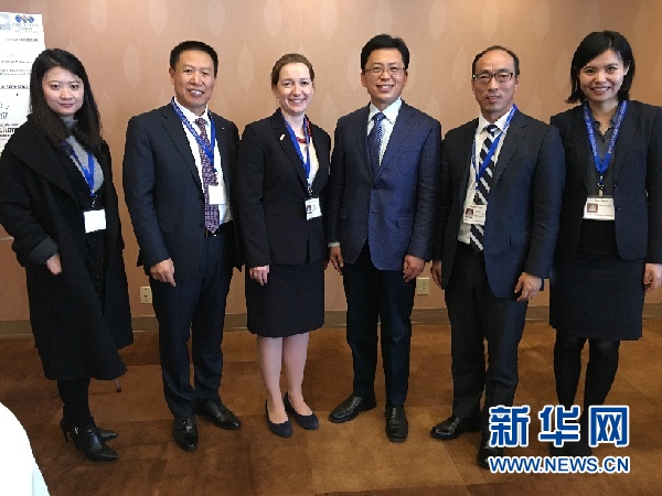 中國駐舊金山副總領事任發(fā)強(右三)等與會代表合影。新華網(wǎng)發(fā)