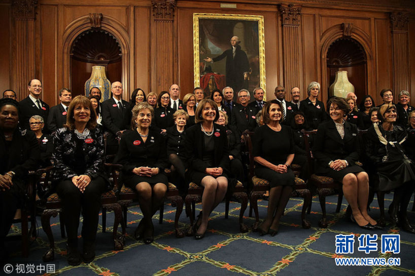 當(dāng)?shù)貢r(shí)間1月30日,美國(guó)華盛頓,民主黨國(guó)會(huì)議員和性侵幸存者一同穿黑衣現(xiàn)身國(guó)會(huì)大廈,聲援勇敢反對(duì)性騷擾和歧視的人們。眾議院民主黨人計(jì)劃穿黑衣出席特朗普的國(guó)情咨文演講,支持MeToo和TimesUp組織。 (圖片來(lái)源:視覺中國(guó))