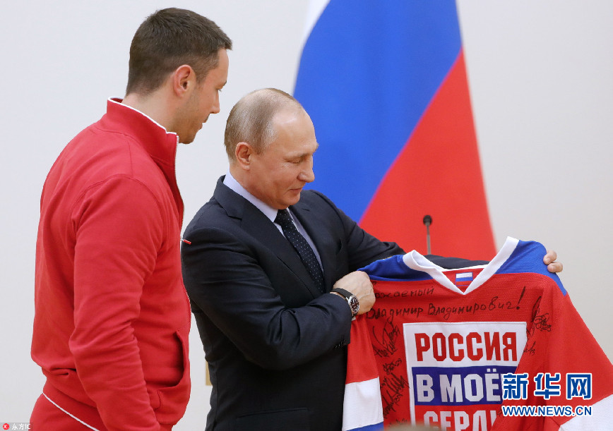 普京會見俄羅斯征戰(zhàn)平昌冬奧會運動員 獲贈簽名球衣