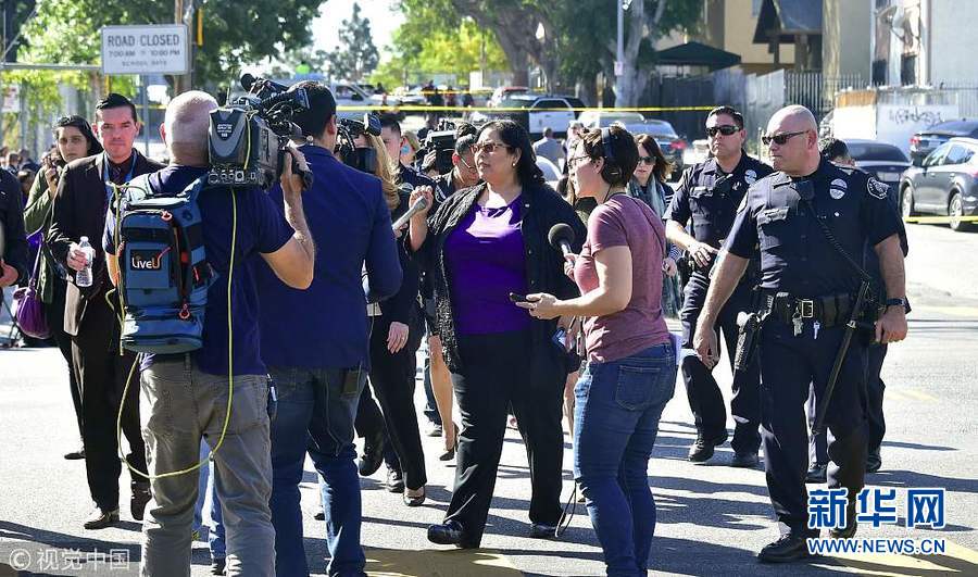 2月1日,美國洛杉磯,洛杉磯薩斯卡斯特羅(Sal Castro)中學發(fā)生槍擊案,已致2名學生送醫(yī),且傷情不明。警方表示,現(xiàn)場情況已經(jīng)得到控制,開槍的女學生已被羈押。但警方并未透露該學生的年齡和姓名。(圖片來源:視覺中國)