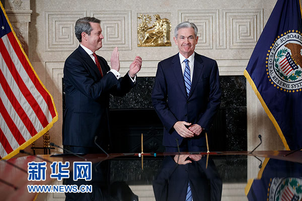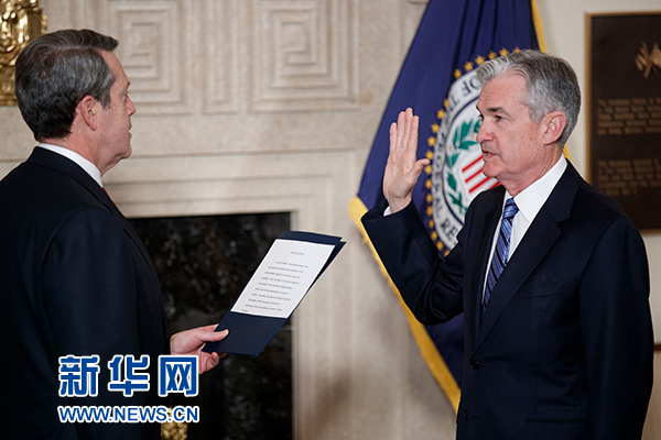 2月5日,杰羅姆·鮑威爾(右)在華盛頓宣誓就任新一屆美國(guó)聯(lián)邦儲(chǔ)備委員會(huì)主席。 新華社發(fā)(沈霆 攝)