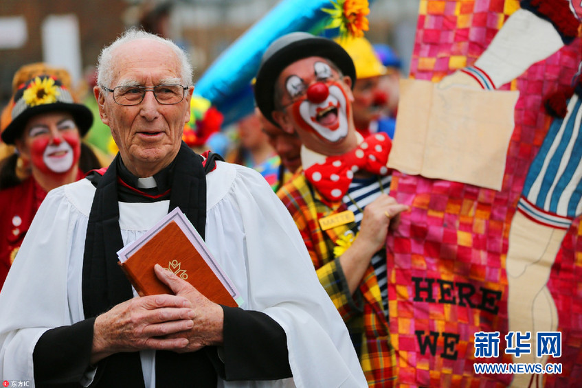 當(dāng)?shù)貢r(shí)間2月4日,英國倫敦,人們扮成小丑的模樣聚集在圣三一教堂,為英國“小丑之父”約瑟夫-格里馬爾迪(1778-1837)舉辦紀(jì)念會(huì)。(圖片來源:東方IC)