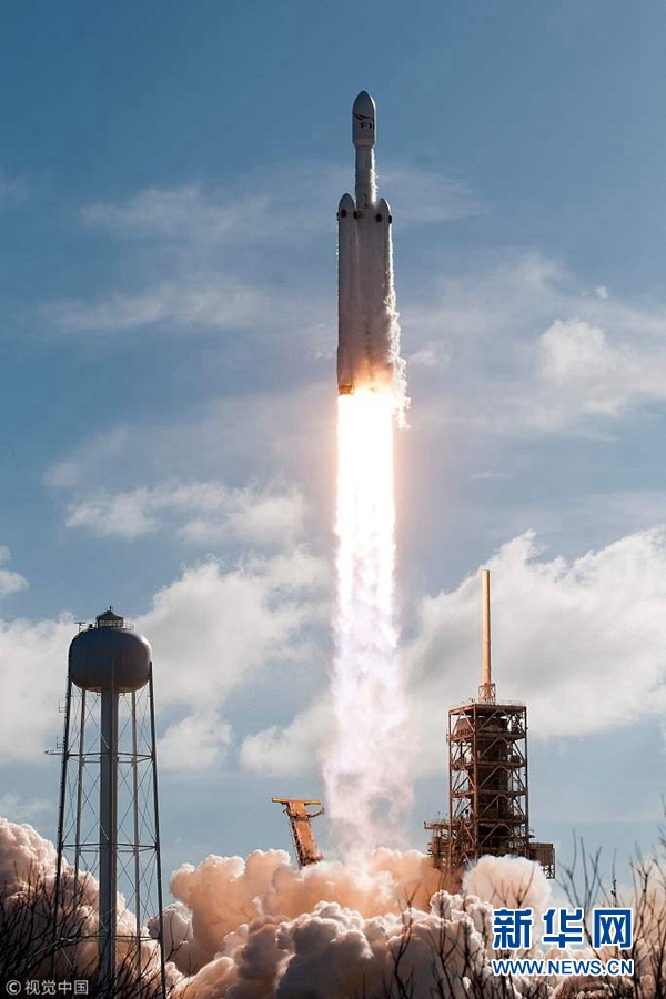 當(dāng)?shù)貢r(shí)間2018年2月6日,美國(guó)佛州卡納維拉爾角,美國(guó)重型運(yùn)載火箭“獵鷹重型”6日攜帶一輛特斯拉跑車發(fā)射升空。(圖片來(lái)源:視覺(jué)中國(guó))