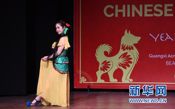 2月9日,在印度首都新德里,2018“歡樂春節(jié)”活動(dòng)演出現(xiàn)場,中國演員在表演舞蹈。新華網(wǎng)發(fā)(張迺杰攝)