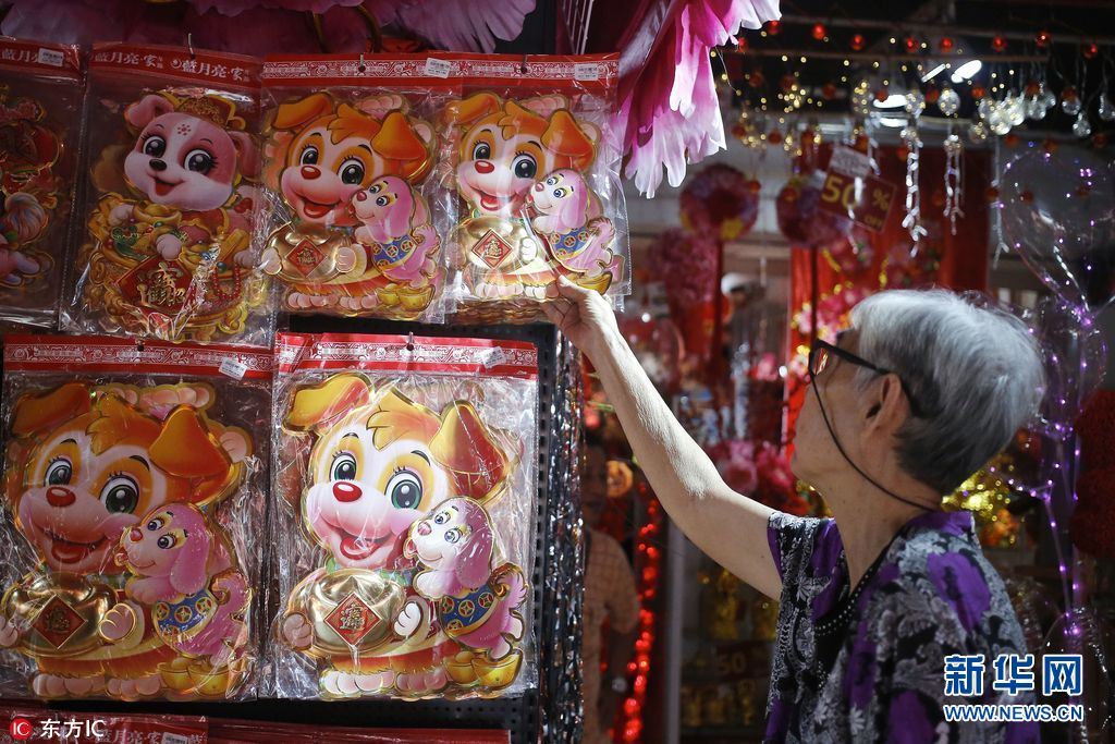 當(dāng)?shù)貢r間2018年2月11日,馬來西亞吉隆坡,中國農(nóng)歷新年將至,當(dāng)?shù)啬曦浭袌黾t火。(圖片來源:東方IC)