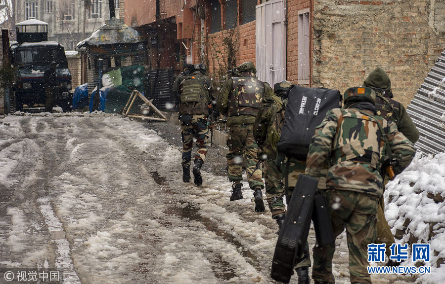 2月12日,印控克什米爾斯利那加,印度政府軍與疑似激進(jìn)分子展開槍戰(zhàn)。兩名持槍歹徒在他們的營地附近開火致一名印度準(zhǔn)軍事部隊(duì)士兵死亡。(圖片來源:視覺中國)
