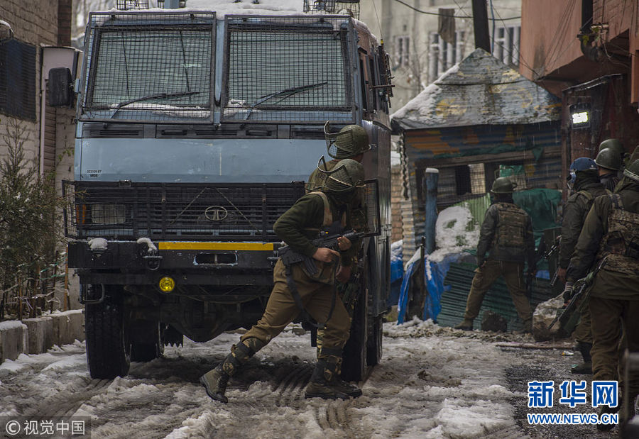 2月12日,印控克什米爾斯利那加,印度政府軍與疑似激進(jìn)分子展開槍戰(zhàn)。兩名持槍歹徒在他們的營(yíng)地附近開火致一名印度準(zhǔn)軍事部隊(duì)士兵死亡。(圖片來(lái)源:視覺中國(guó))