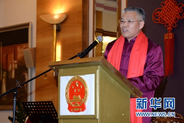2月12日,中國駐克羅地亞大使胡兆明在薩格勒布出席中國春節(jié)慶祝晚會時(shí)致辭。新華網(wǎng)發(fā)(高磊攝)