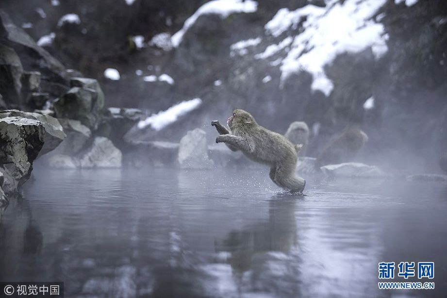 2018年2月18日訊(具體拍攝時(shí)間不詳),日本長(zhǎng)野縣地獄谷,活潑的猴子在溫泉中跳進(jìn)跳出,嬉戲休息。地獄谷野猿公苑地處長(zhǎng)野縣的志賀高原,由于這里的噴泉不斷地從地殼里噴射出蒸汽,故被稱為“地獄谷”。冬季,這里最低氣溫低于零下10℃,屬于極寒地帶。(圖片來源:視覺中國(guó))