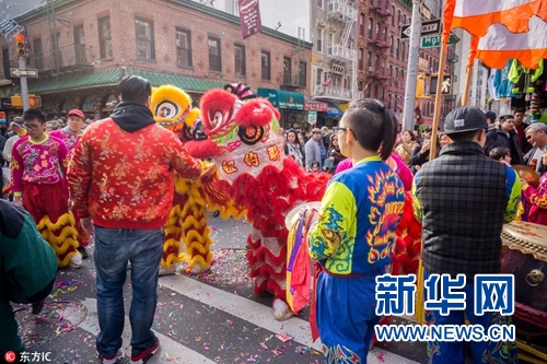 在美國各地的唐人街,節(jié)日氣氛尤其濃厚,鑼鼓震天、鞭炮齊鳴,舞獅隊(duì)伍走上街頭,祈愿人們生活紅紅火火,運(yùn)氣越來越好。