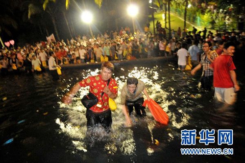 元宵之夜,華裔單身男女紛紛走出家門,涌向公園的河邊或湖邊,男的拋香蕉,女的拋柑橘,還在水果上寫上聯(lián)絡(luò)號(hào)碼,以期覓得一段好姻緣。