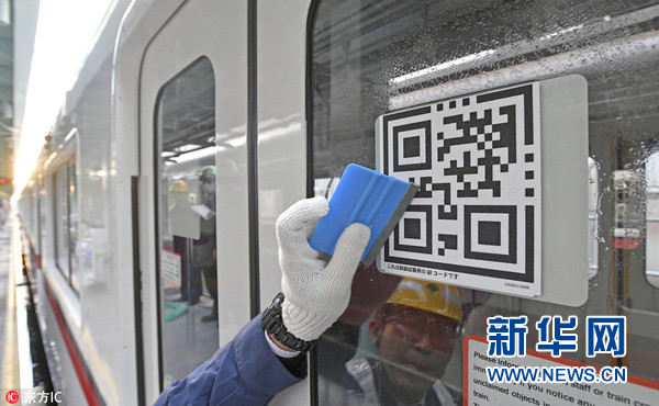 2017年11月24日,日本東京,地鐵列車門上的二維碼,一旦乘客發(fā)現(xiàn)任何異常,可通過(guò)掃描二維碼來(lái)通知地鐵工作人員。