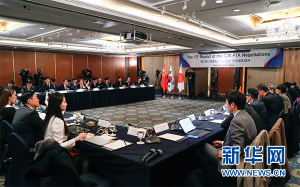 中日韓自貿(mào)區(qū)第十三輪談判首席談判代表會議在首爾舉行