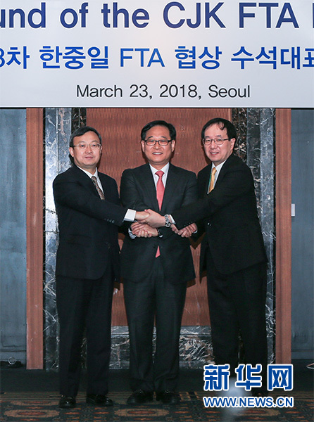 3月23日,中日韓自貿(mào)區(qū)第十三輪談判首席談判代表會議在韓國首爾舉行。新華社記者 王婧嬙 攝