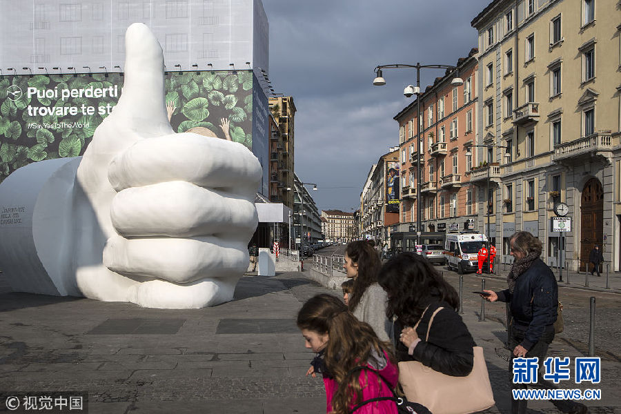 畫風(fēng)清奇!意大利米蘭地標(biāo)建筑旁現(xiàn)“點(diǎn)贊”大拇指