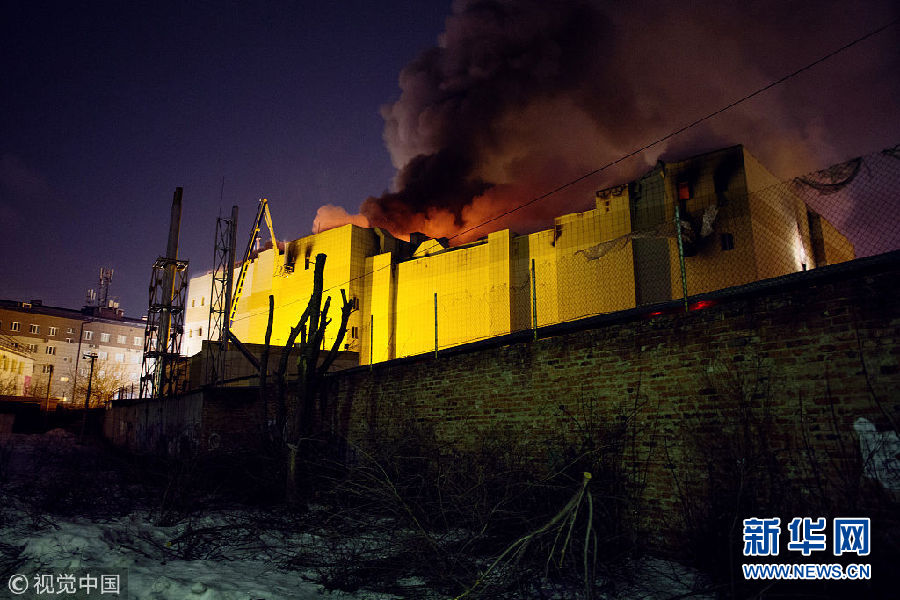 當(dāng)?shù)貢r間2018年3月25日,俄羅斯西西伯利亞南部城市克麥羅沃一家購物中心發(fā)生重大火災(zāi)。據(jù)俄緊急情況部26日發(fā)布的消息,大火已造成64人死亡。(圖片來源:視覺中國)