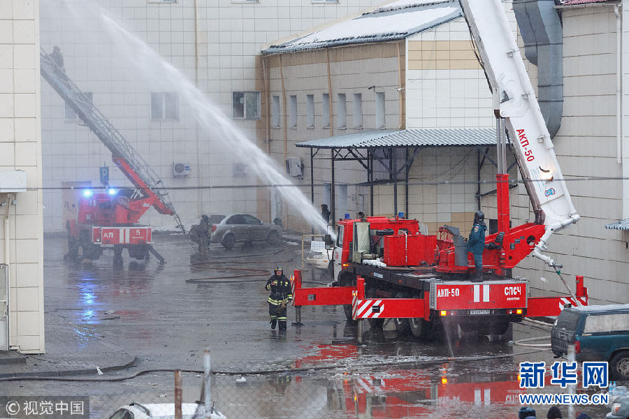 當(dāng)?shù)貢r(shí)間2018年3月25日,俄羅斯西西伯利亞南部城市克麥羅沃一家購物中心發(fā)生重大火災(zāi)。據(jù)俄緊急情況部26日發(fā)布的消息,大火已造成64人死亡。(圖片來源:視覺中國)