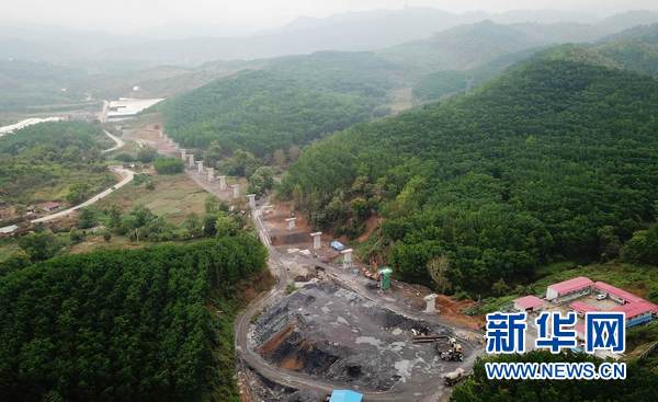 這是3月27日在老撾南塔省航拍的正在施工建設中的橋梁。新華網(wǎng)發(fā) 劉艾倫攝