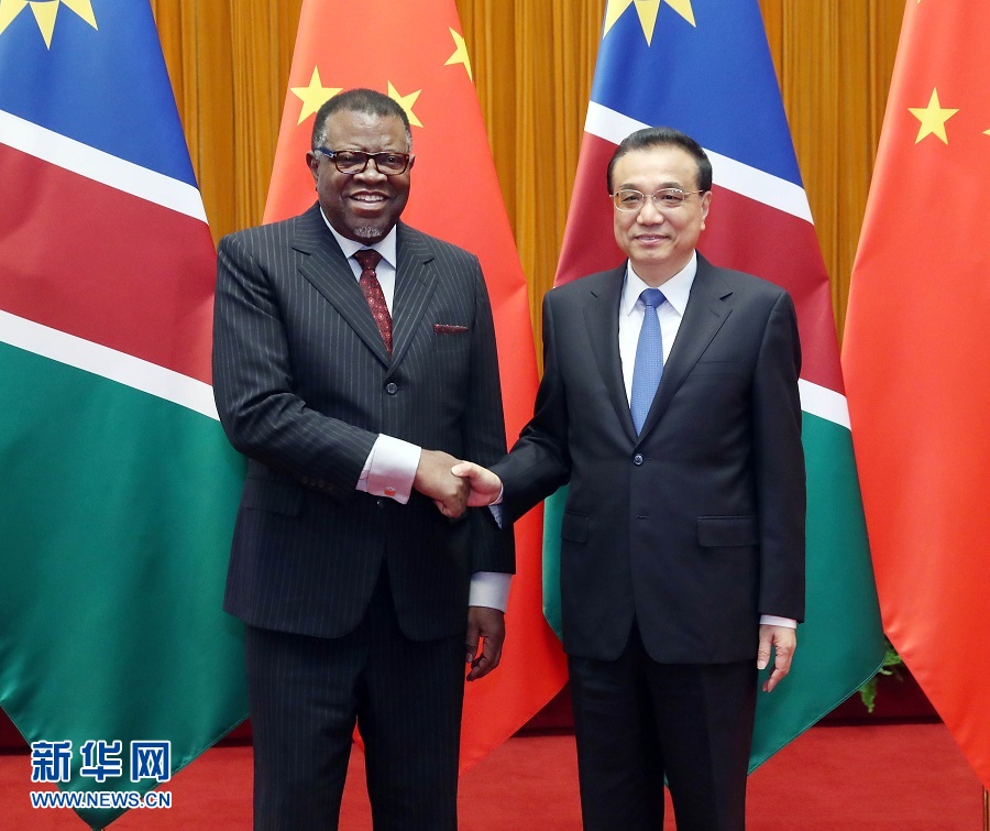新華社北京3月30日電(記者譚晶晶)國務(wù)院總理李克強(qiáng)30日下午在人民大會堂會見來華進(jìn)行國事訪問的納米比亞總統(tǒng)根哥布。