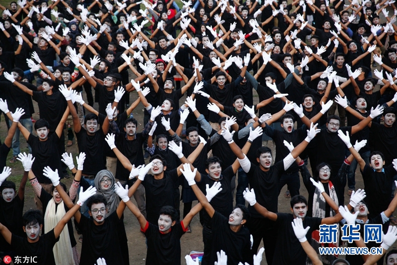 當(dāng)?shù)貢r間2018年4月8日,孟加拉國達卡,2018年國際啞劇節(jié)在達卡開幕,超過254名啞劇演員齊聚達卡大學(xué)參加表演,成為全世界啞劇演員最多的表演節(jié)目,破吉尼斯世界紀錄。(圖片來源:東方IC)