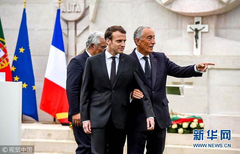4月9日,法國里什堡,法國總統(tǒng)馬克龍和葡萄牙總統(tǒng)馬塞洛·雷貝洛·德索薩在一戰(zhàn)葡萄牙公墓出席一戰(zhàn)紀念儀式,紀念利斯戰(zhàn)役百年。(圖片來源:視覺中國)