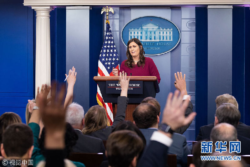 當(dāng)?shù)貢r間2018年4月10日,美國華盛頓,白宮發(fā)言人桑德斯宣布美國總統(tǒng)特朗普將不會按原計劃前往秘魯,參加第八屆美洲國家峰會,并派副總統(tǒng)代為前往。原因是特朗普需要留在國內(nèi),負(fù)責(zé)對敘利亞問題作出回應(yīng)以及觀察國際動向。(圖片來源:視覺中國)