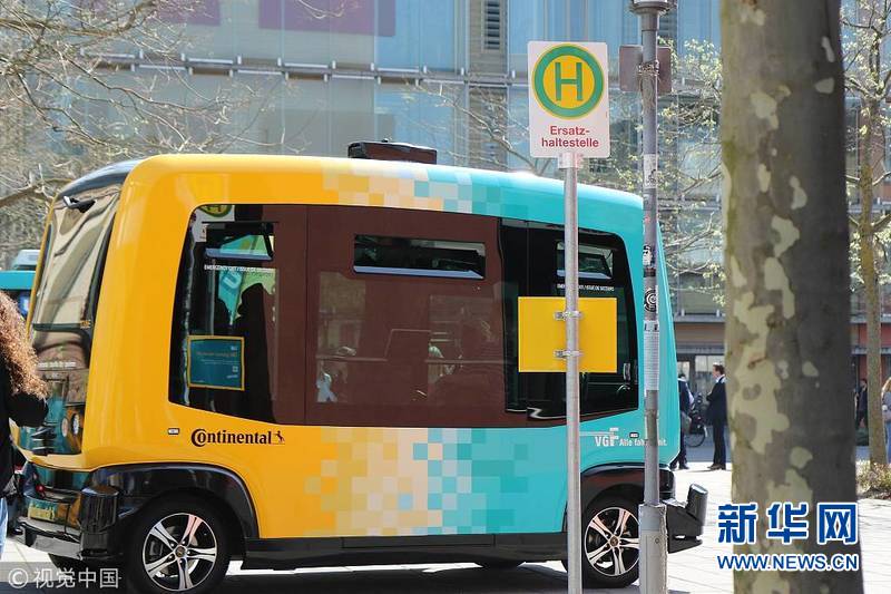 4月17日,德國法蘭克福,法蘭克福應(yīng)用科學(xué)大學(xué)測試自動駕駛擺渡巴士。(圖片來源:視覺中國)