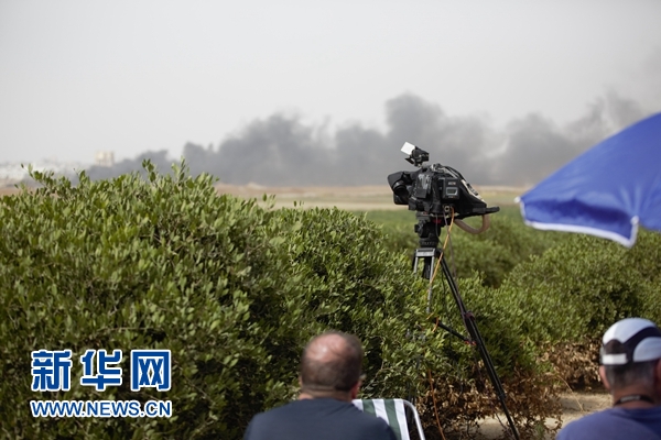 正午的驕陽烤得人大汗淋漓,被大風卷起的黃沙一個勁地往眼睛里鉆。雖然記者的眼睛經(jīng)常被汗水和沙子蹂躪地睜不開,但是這并不妨礙記者用相機和攝像機記錄下加沙地帶那一頭發(fā)生的一幕幕??棺h的巴勒斯坦人燃燒輪胎所產(chǎn)生的濃煙,遮住了大片天空,刺鼻的焦味隨風飄散。