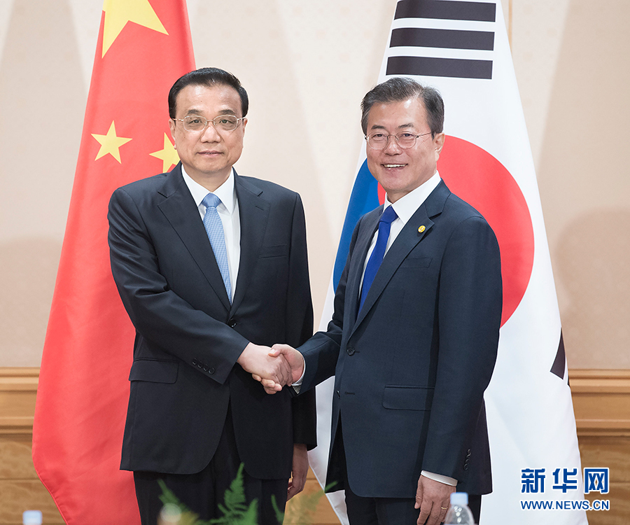 李克強(qiáng)首先轉(zhuǎn)達(dá)習(xí)近平主席對(duì)文在寅總統(tǒng)的親切問候。李克強(qiáng)表示,中韓是友好近鄰和重要合作伙伴。中方愿同韓方加強(qiáng)戰(zhàn)略溝通,夯實(shí)政治互信,深化互利合作,推動(dòng)地區(qū)形勢(shì)進(jìn)一步緩和,希韓方繼續(xù)妥善處理好“薩德”問題。雙方應(yīng)加強(qiáng)發(fā)展戰(zhàn)略對(duì)接,深化各領(lǐng)域合作,擴(kuò)大互利共贏。
